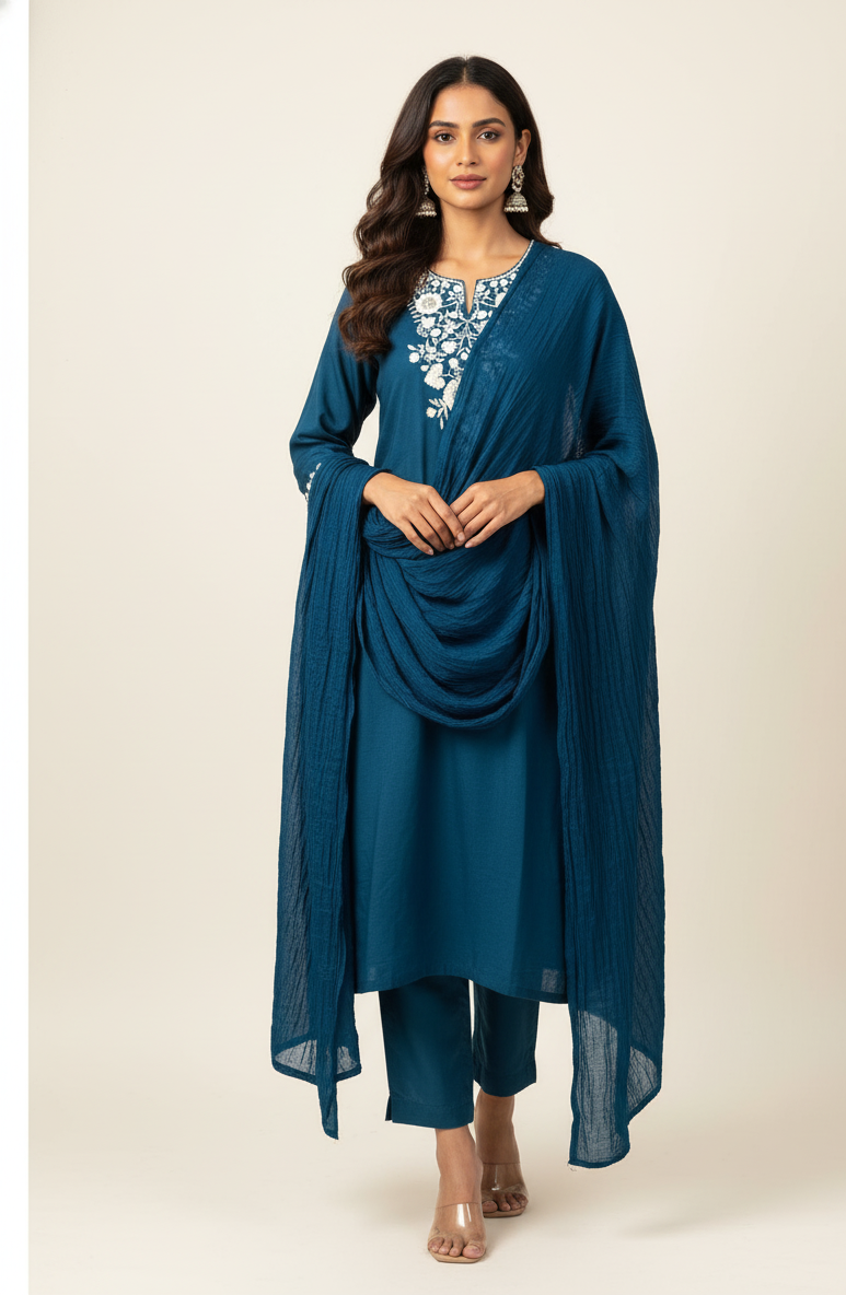 Premium Mul Chanderi Dupatta Set with Embroidery MLC024