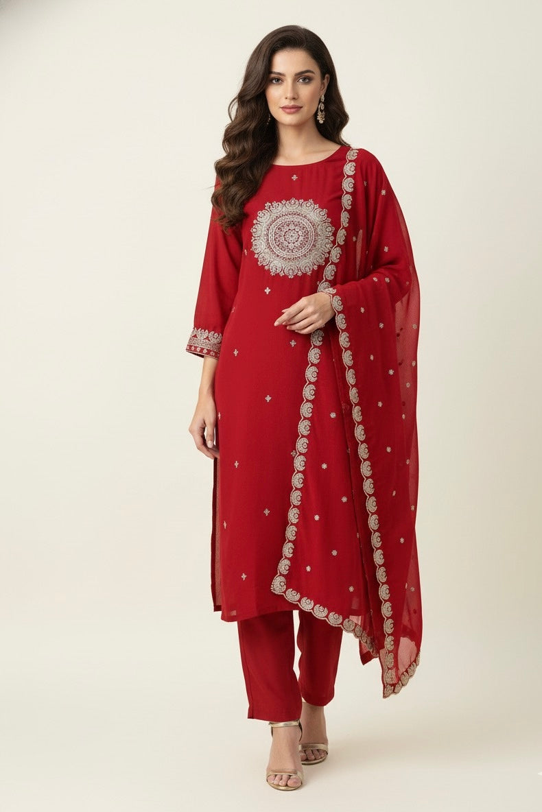 Premium Mul Chanderi With Hand Work Dupatta Set MLC018