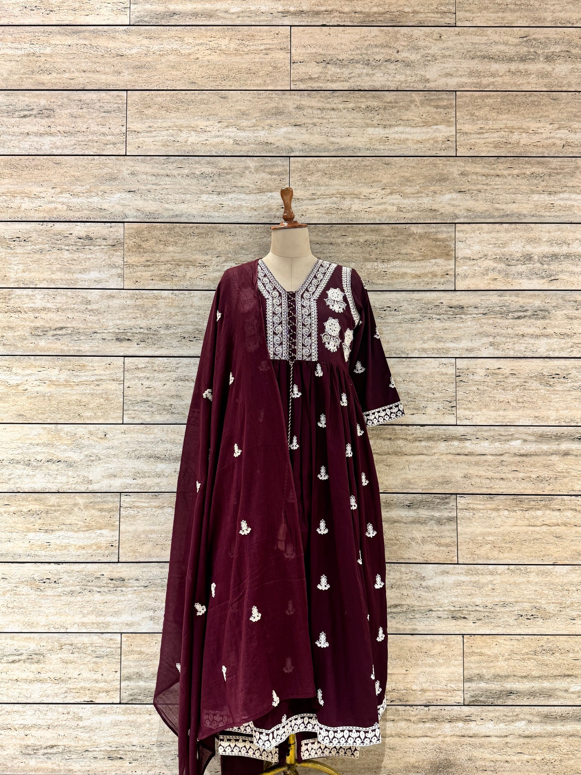 Premium Range Solid Base Embroidered Cotton Suit CS022