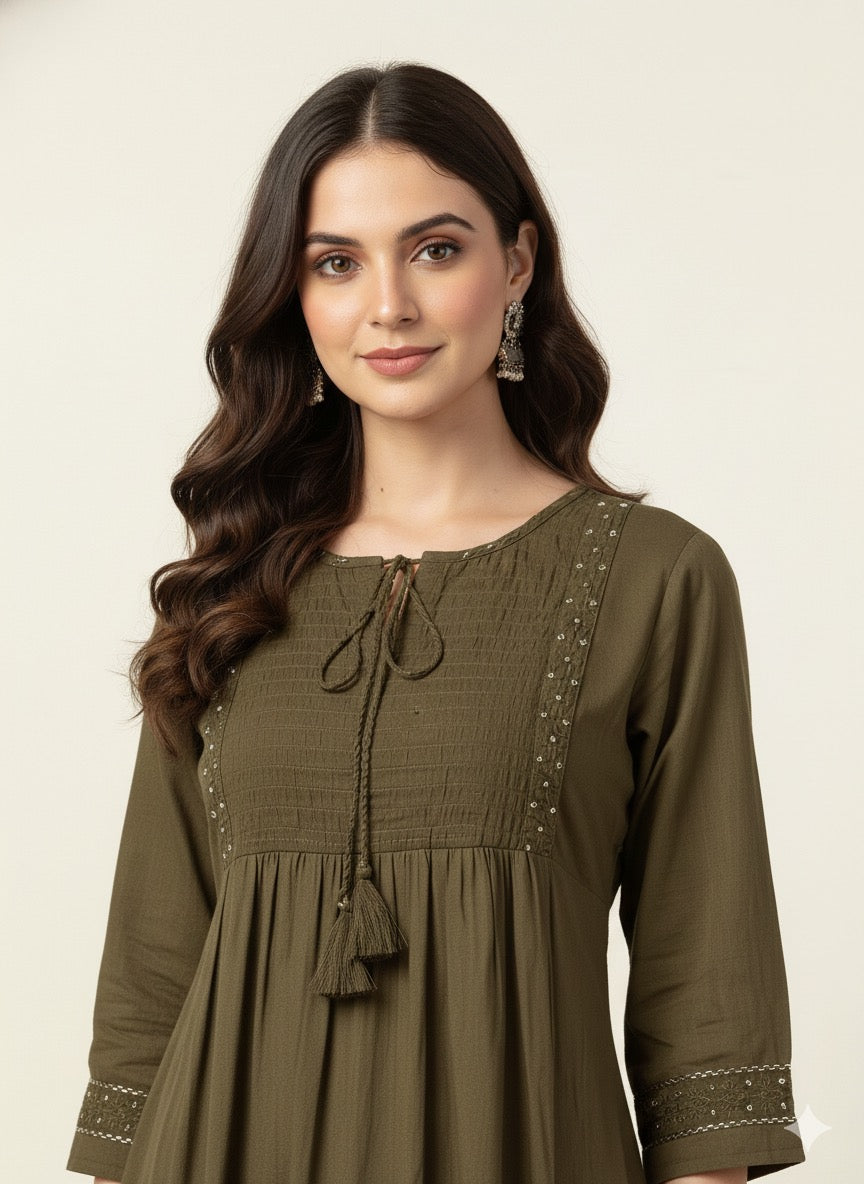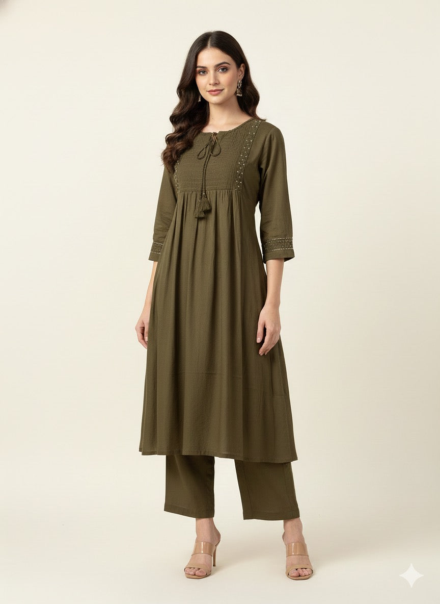 Pure cotton A line Solid Dupatta set with embroidery CS0279