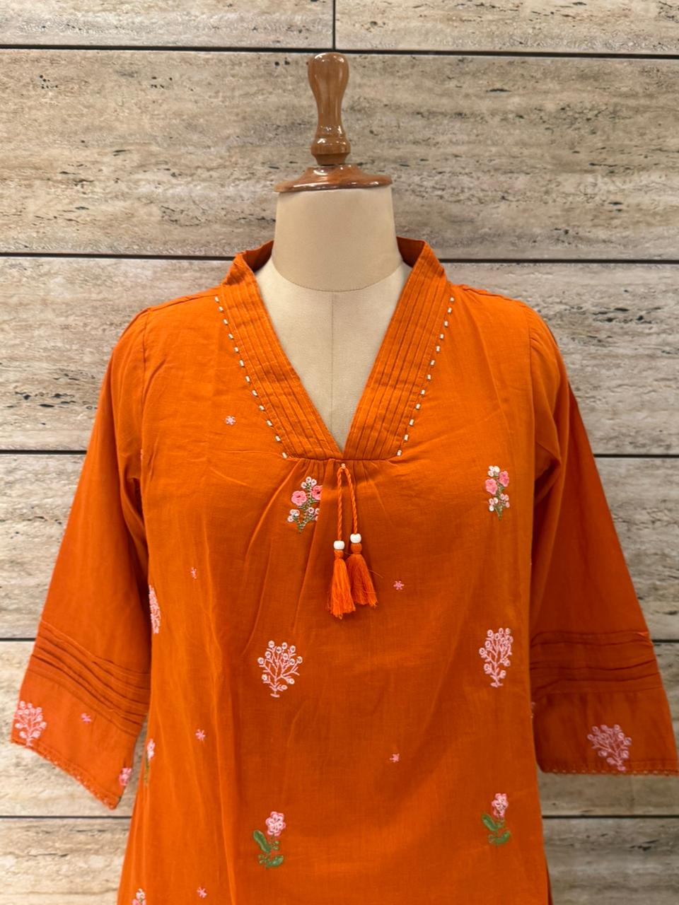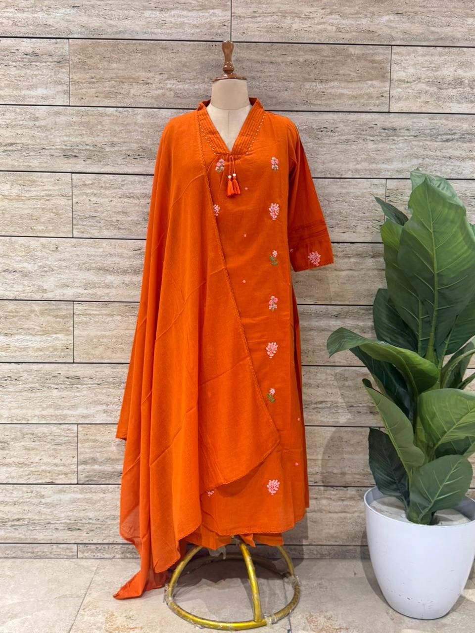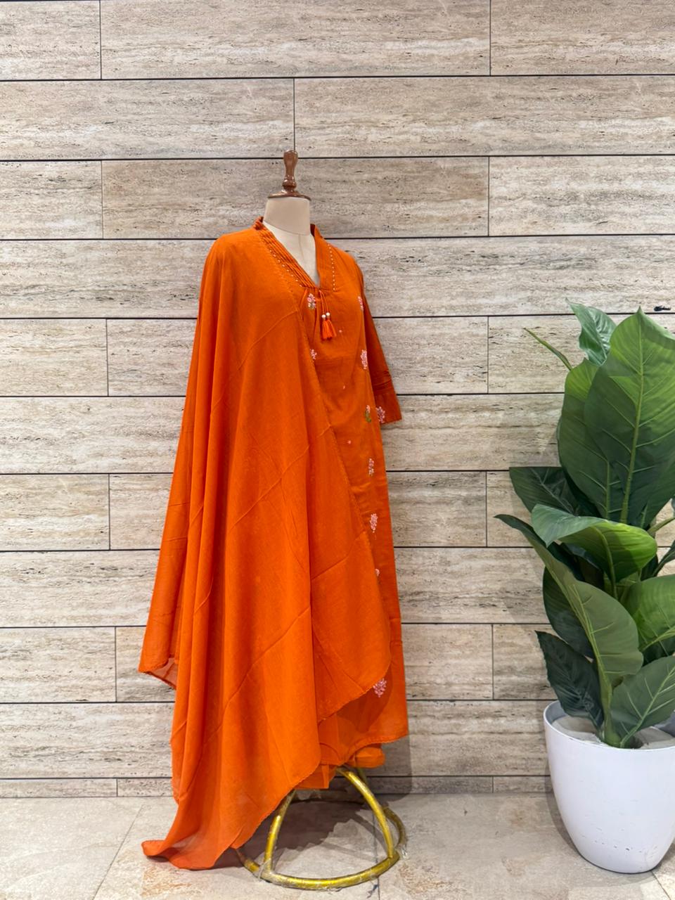 Pure Cotton A Line Dupatta Set With Embroidery Work CS077