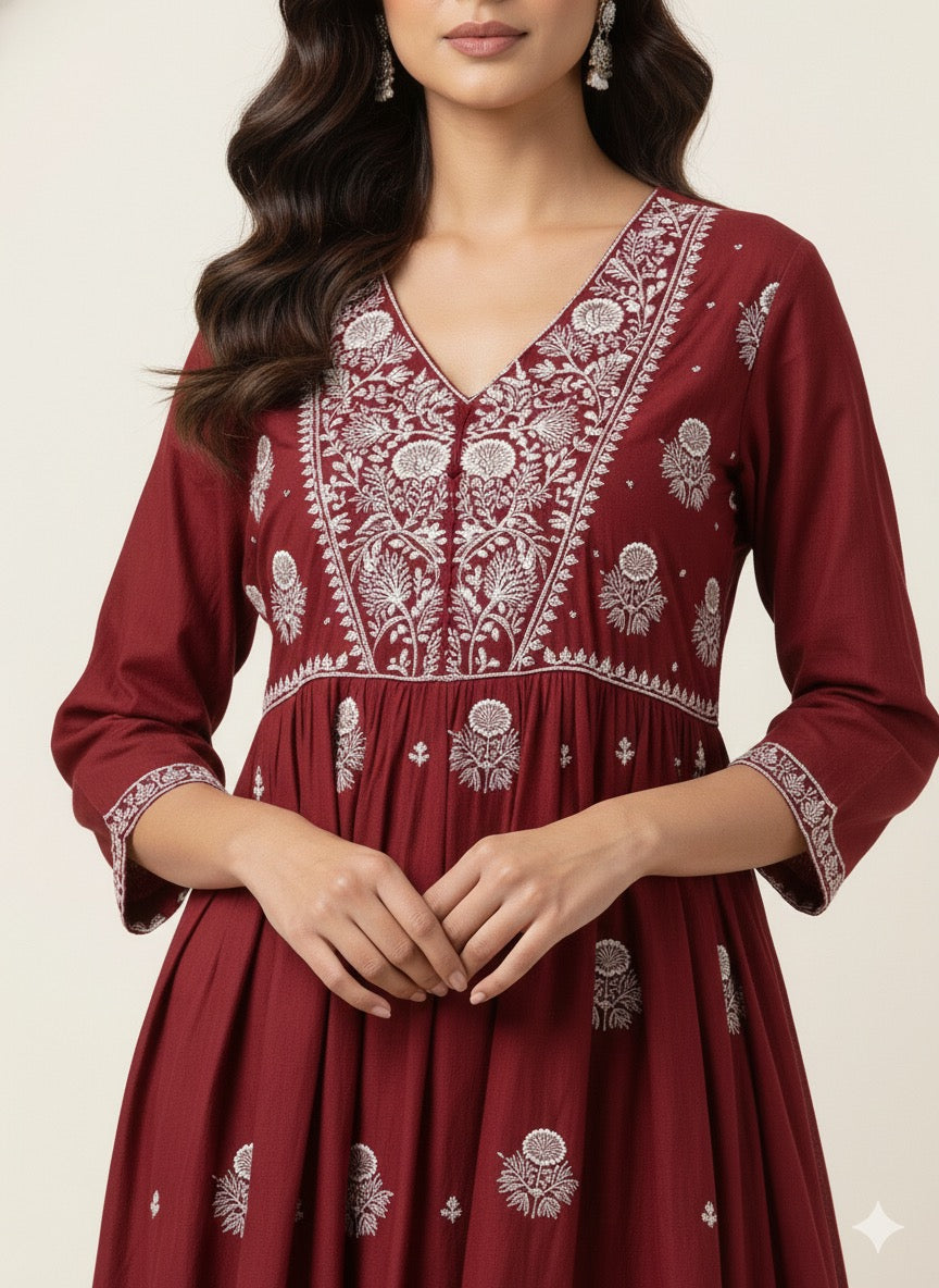 Pure Cotton A Line Dupatta Set With Embroidery Work CSO90