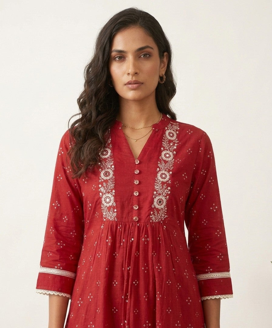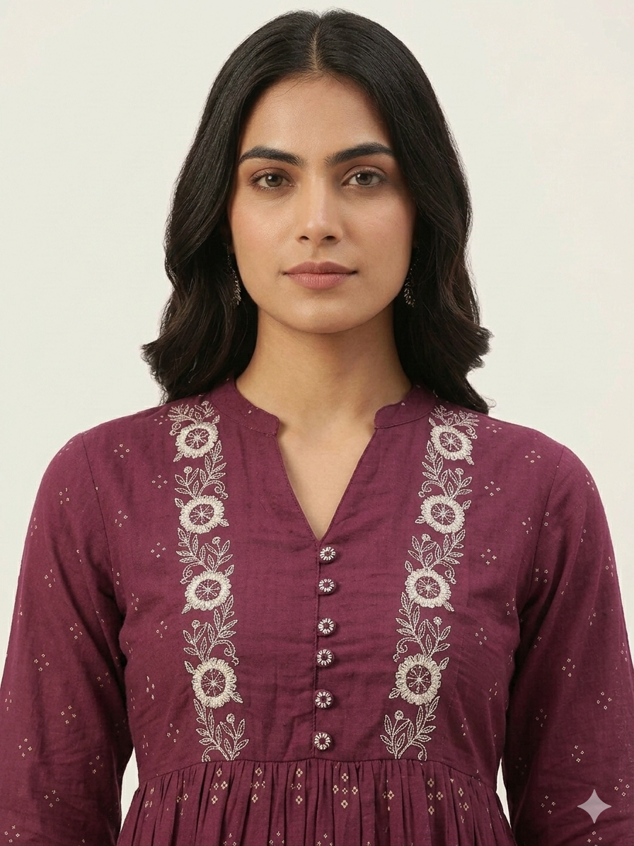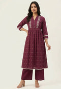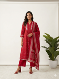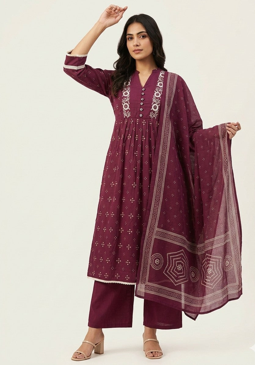 Pure Cotton A Line Three Piece Dupatta Set With Embroidery CS0240