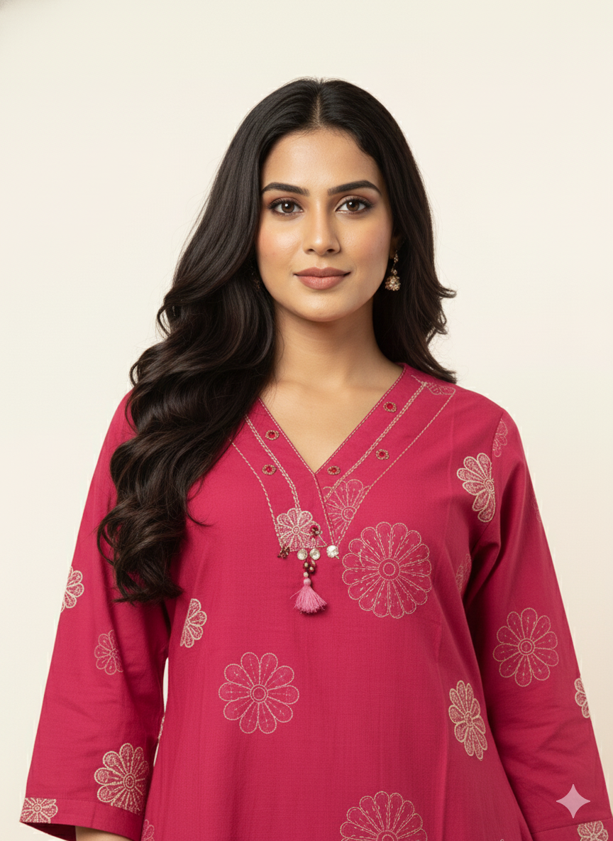 Pure Cotton A Line Three Piece Dupatta Set With Palazzo CS0337