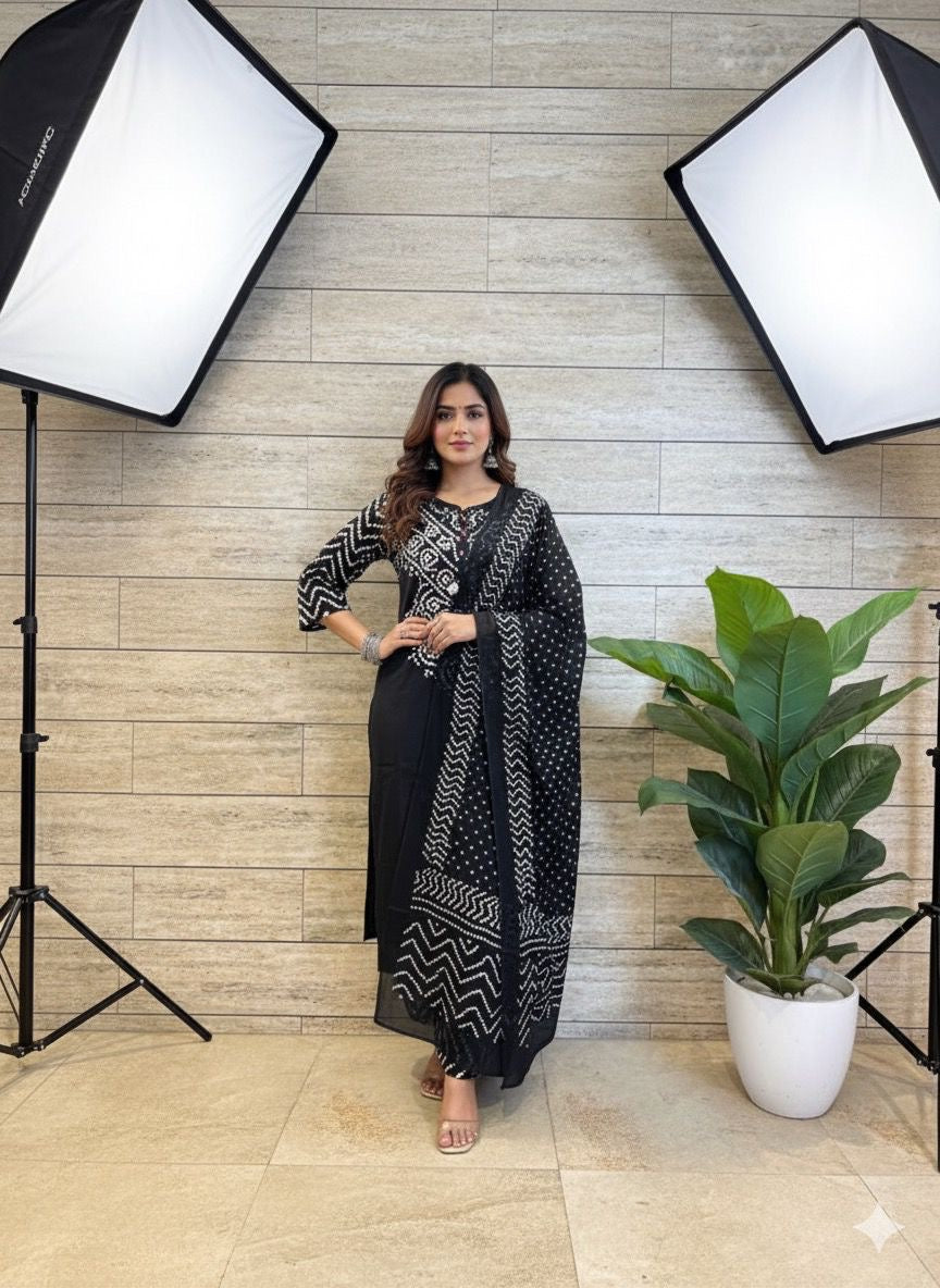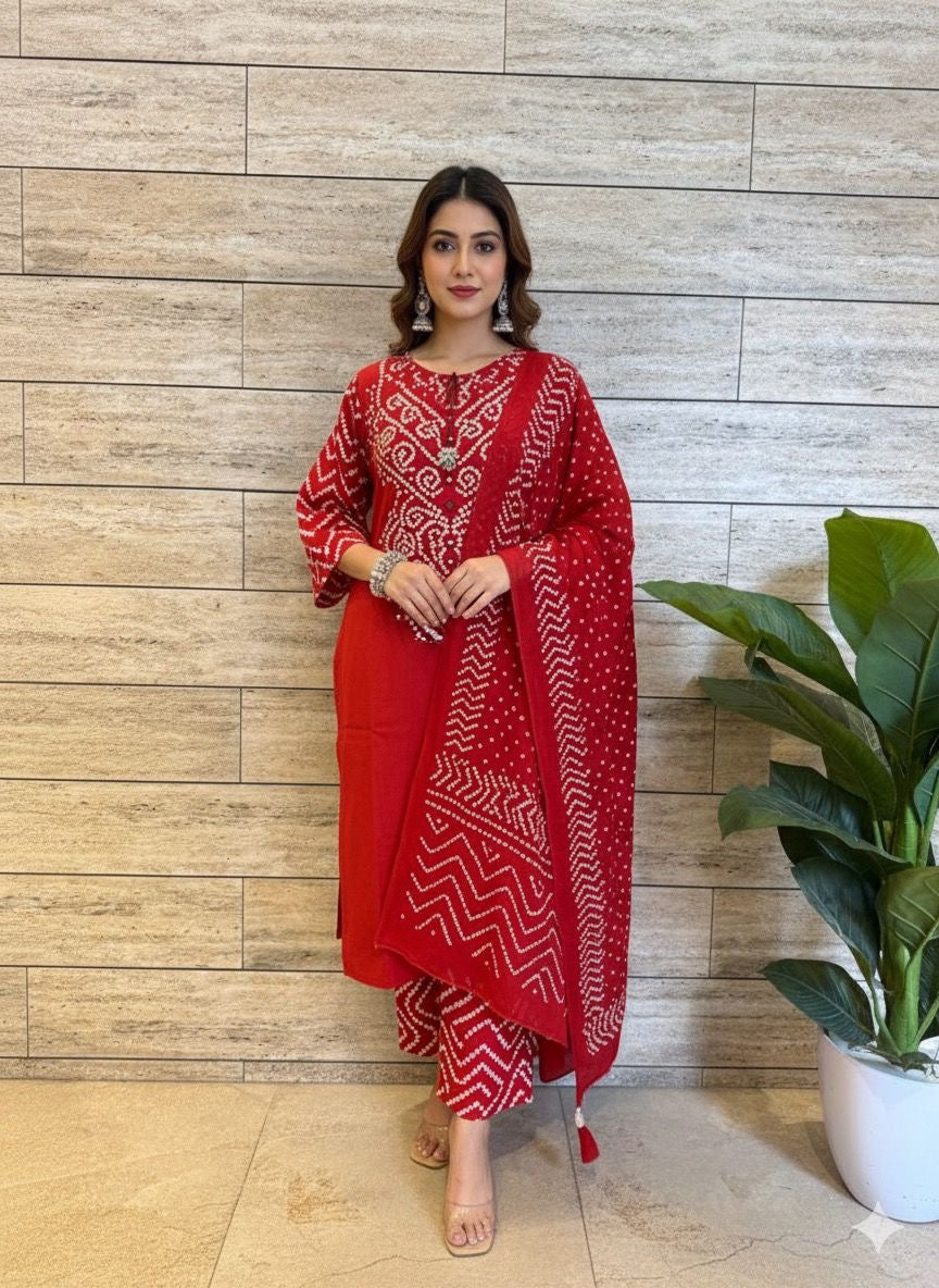 Pure Cotton Bandhez Print Dupatta Set With Palazzo CS099