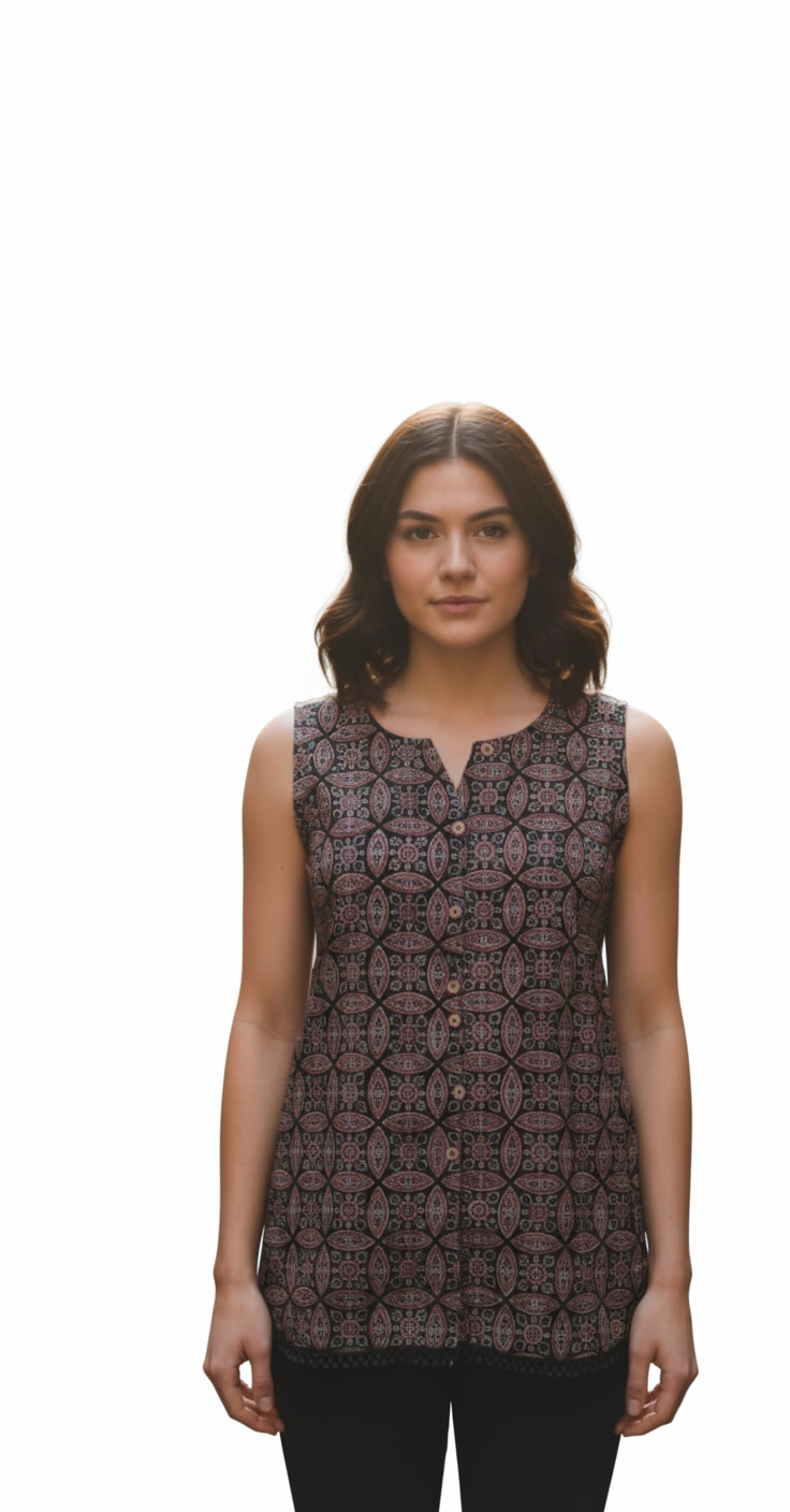 Pure Cotton Block Print Sleeveless Short Top ST003 ( Sleeves Attached )