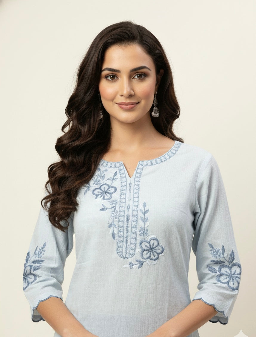 Pure Cotton Dupatta Set With Embroidery Work CS071