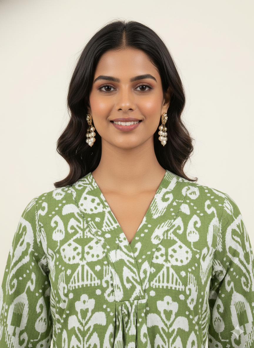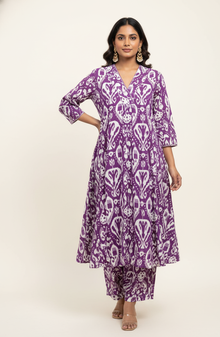 Pure Cotton Floral Print A Line Two Piece Pant Set PS070