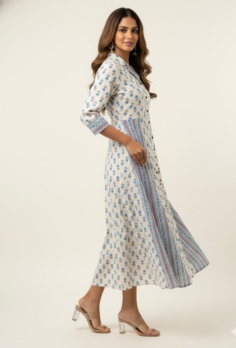 Pure Cotton Midi One Piece Dress With 1 Side Pocket SD008