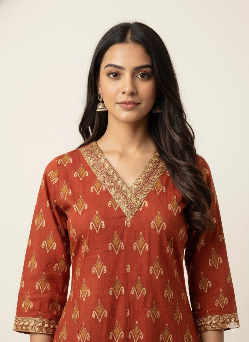 Pure Cotton Floral Print Three Piece Dupatta Set CS0208