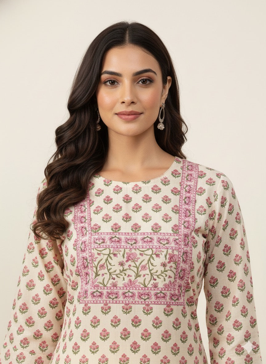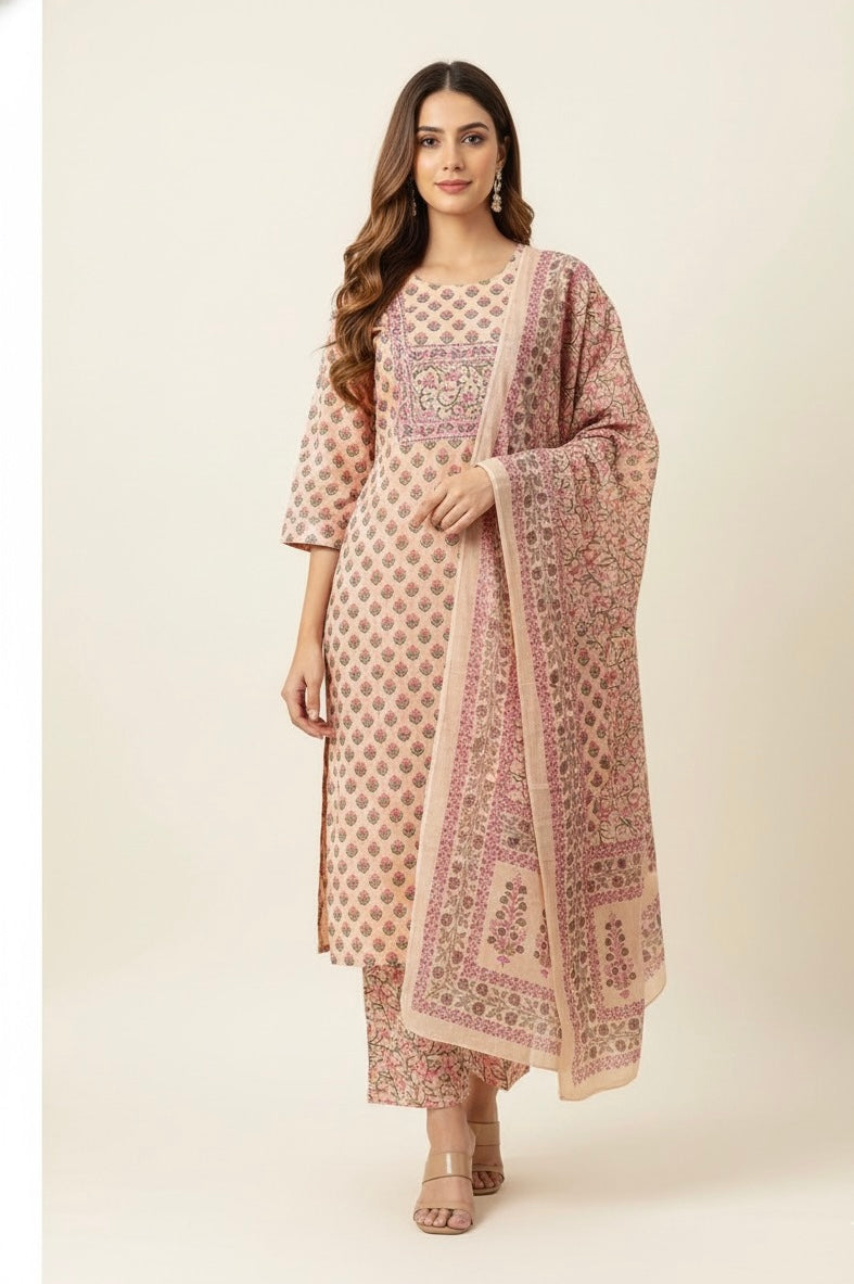 Pure Cotton Floral Print Three Piece Dupatta Set CS0210