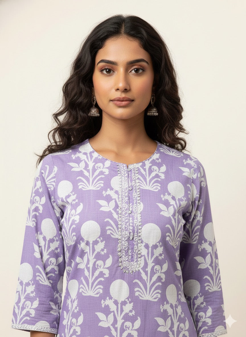 Pure Cotton Floral Print Three Piece Dupatta Set CS0197