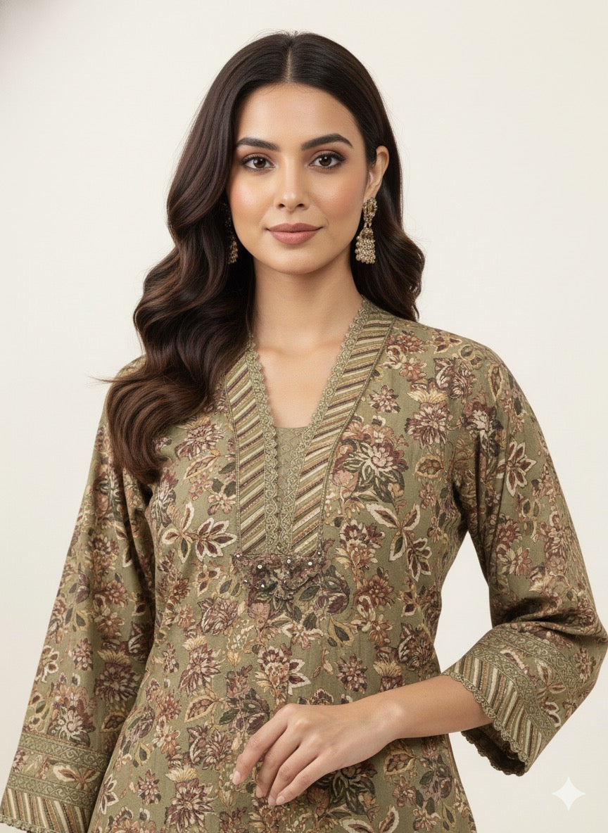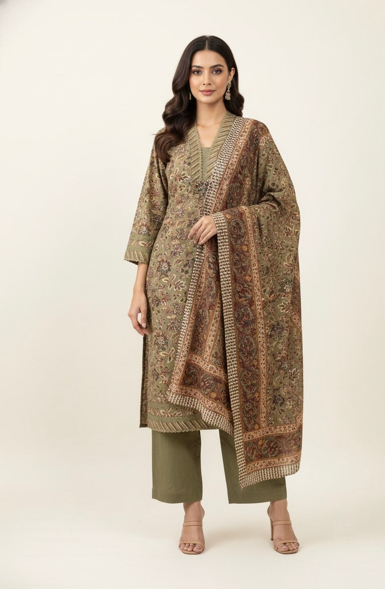 Pure Cotton Floral Print Three Piece Dupatta Set CS0199