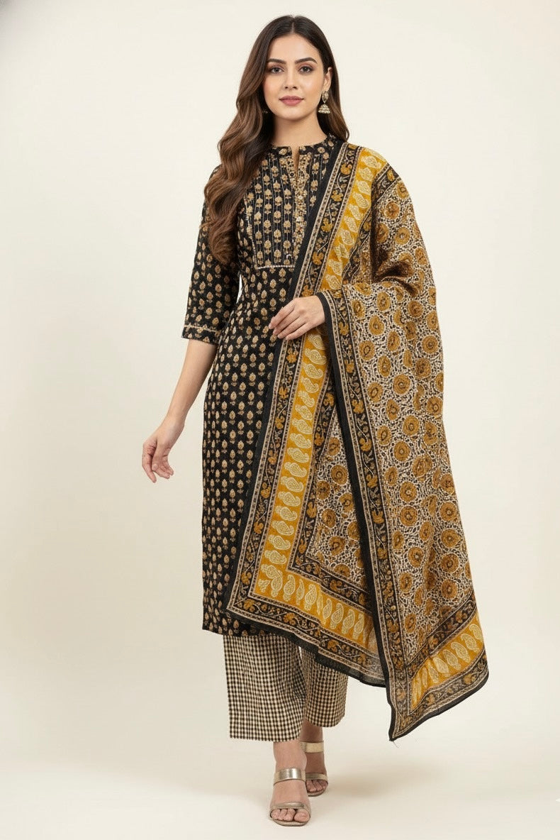 Pure Cotton Floral Print Three Piece Dupatta Set CS0202