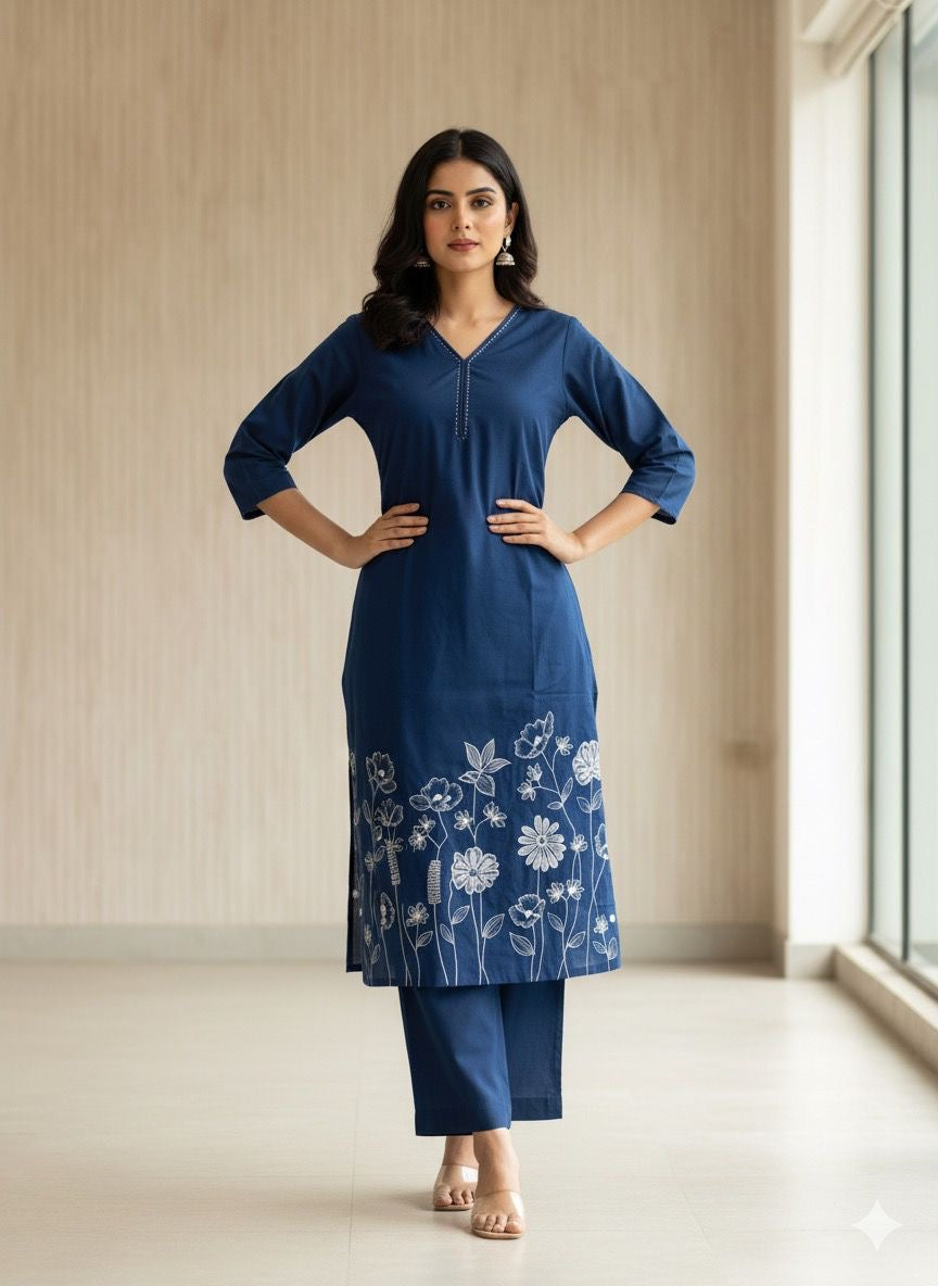 Pure Cotton Solid Base Embroidered Dupatta Set CS092