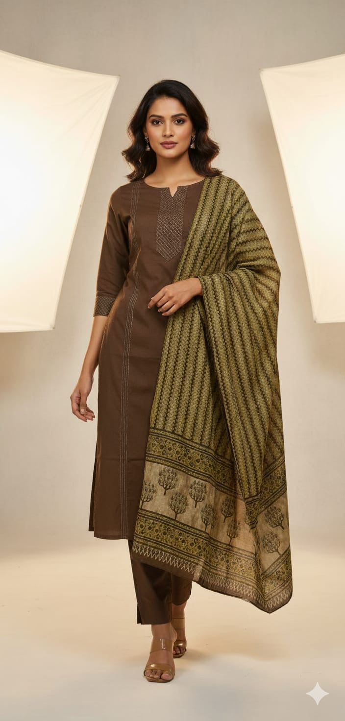 Pure cotton solid pattern with printed Dupatta set CS0118