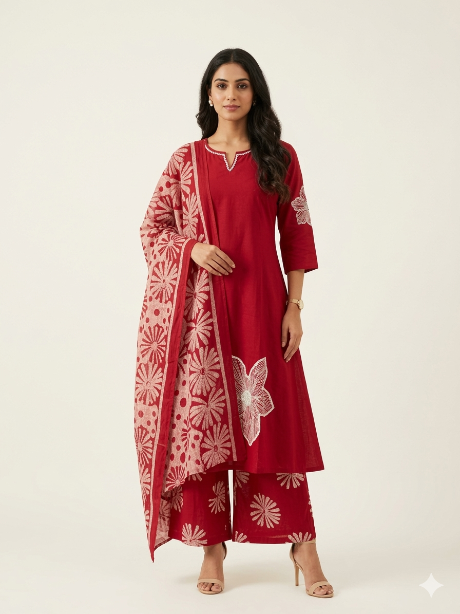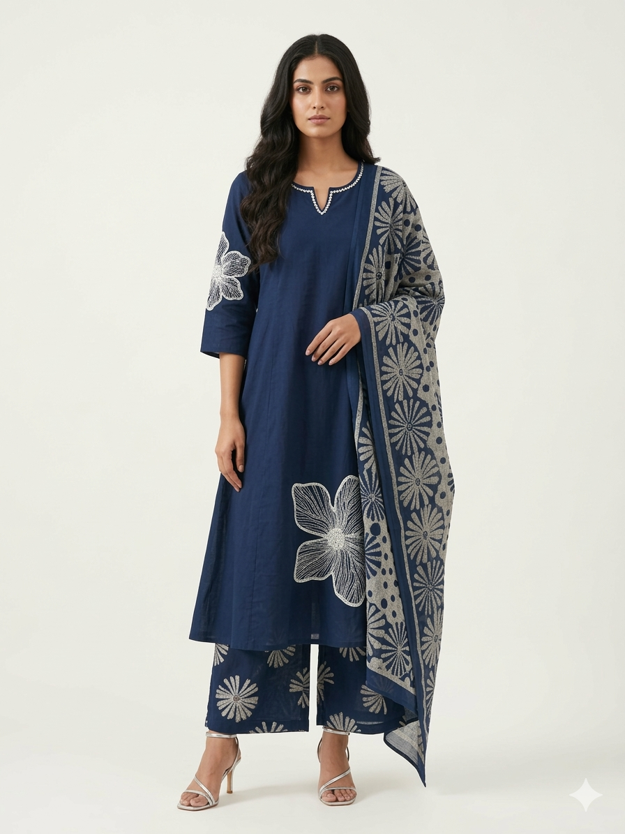Pure Cotton A Line Dupatta Set With Embroidery CS0272