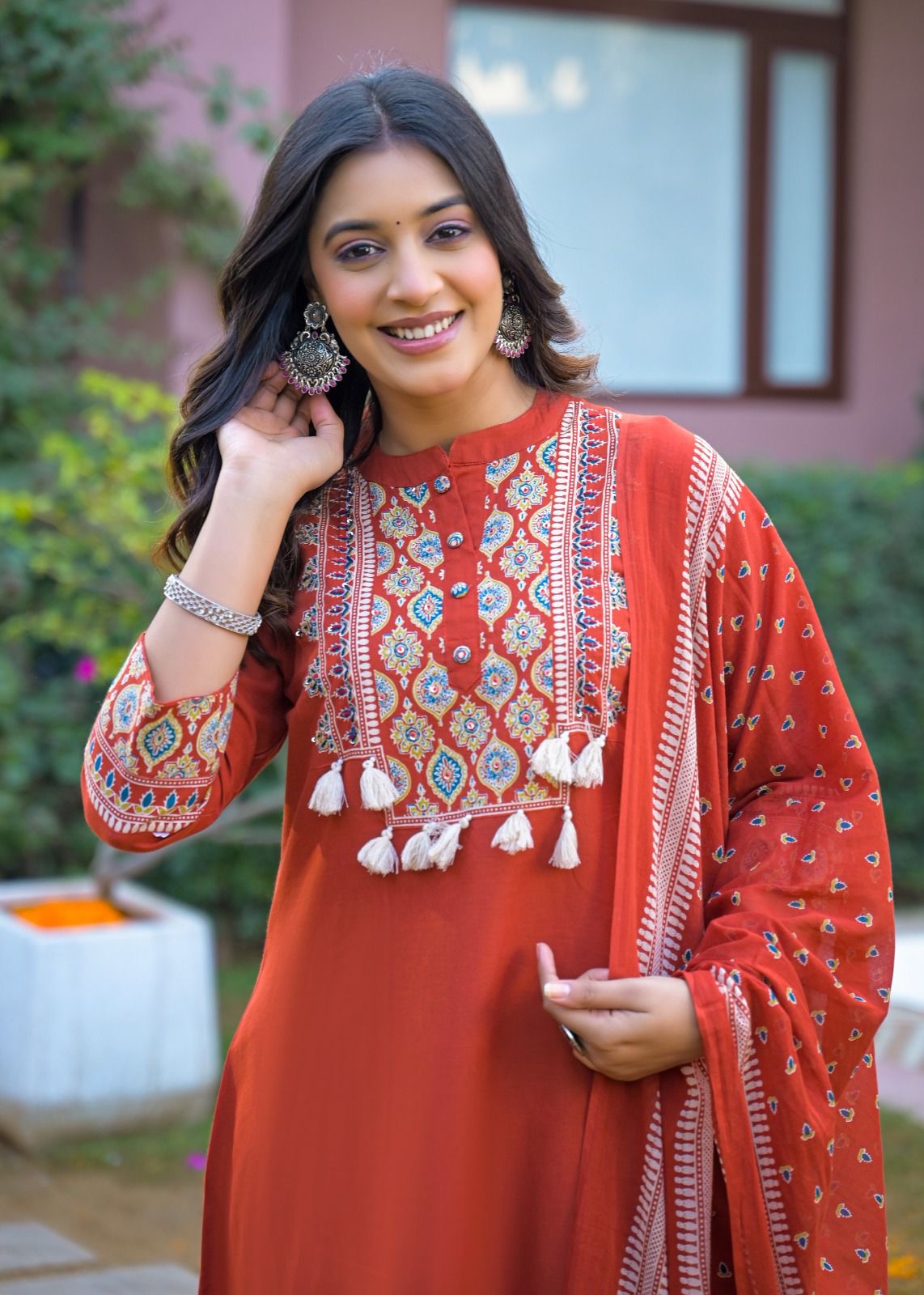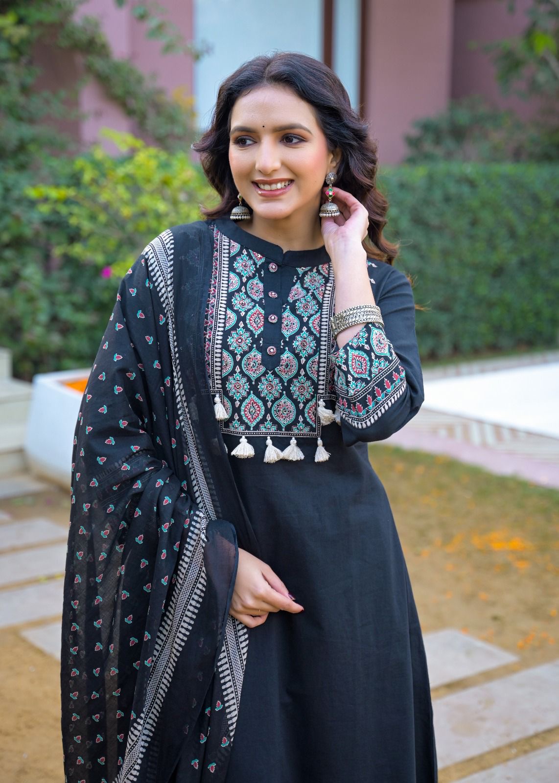 Pure Cotton A Line Three Piece Dupatta Set With Palazzo CS0318