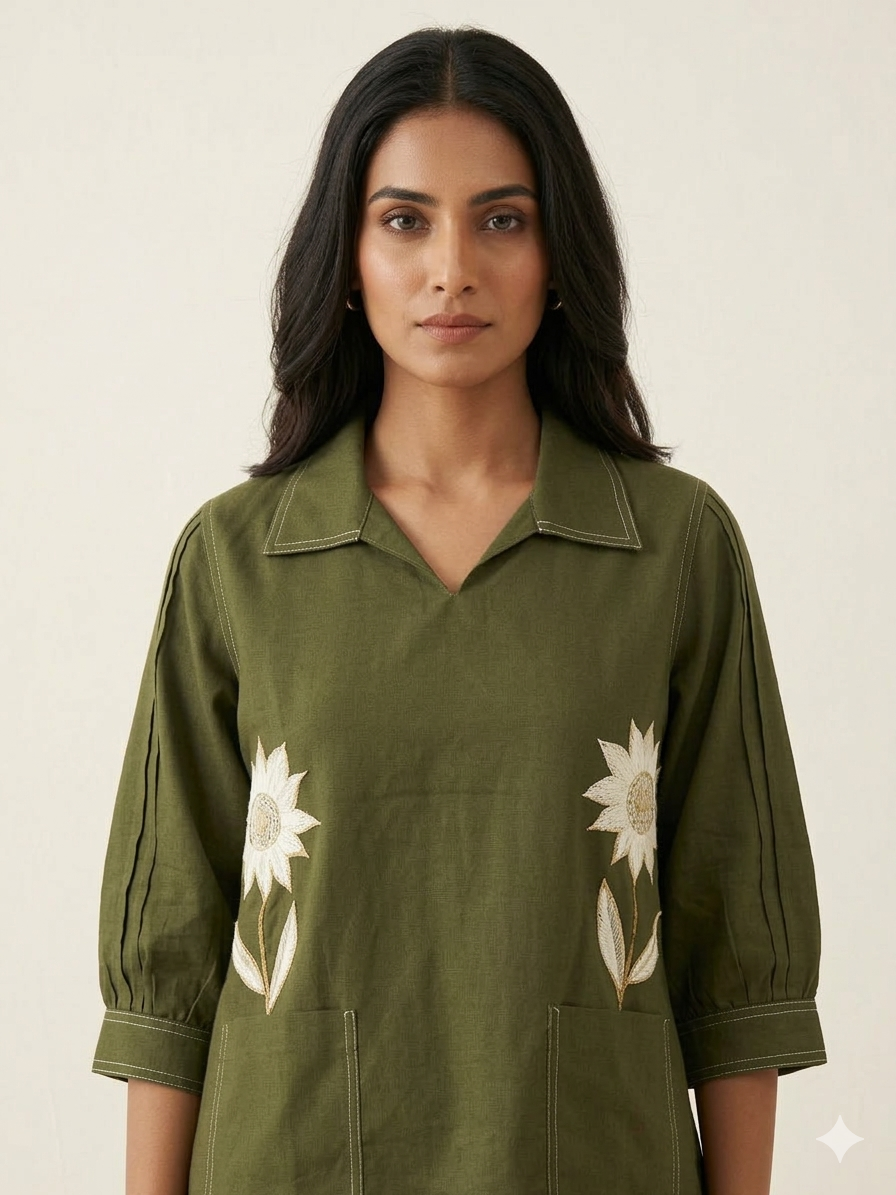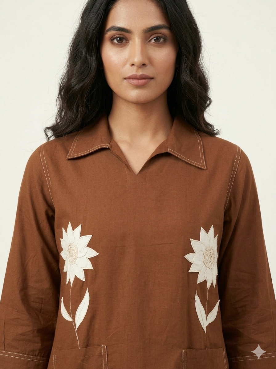 Pure Cotton Two Piece Co Ord Set With Embroidery COS0113