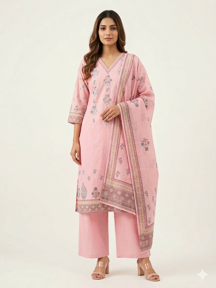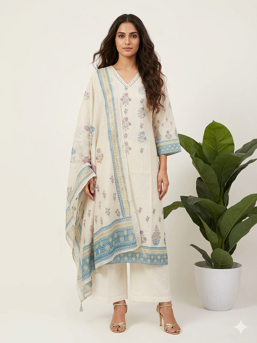 Pure Linen Three Piece Dupatta Set With Lining LN001