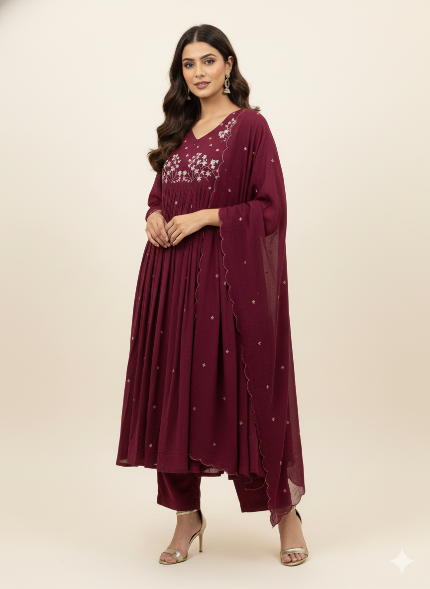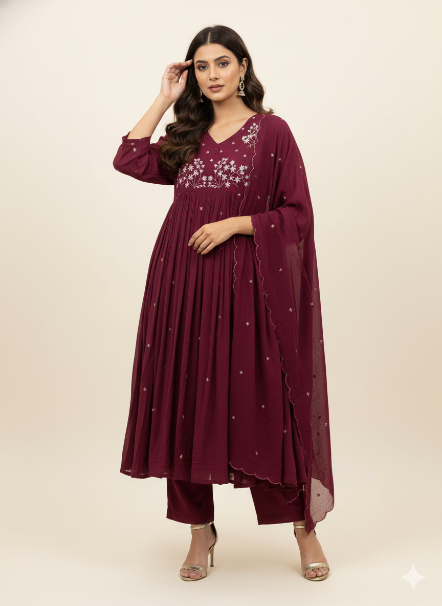 Premium Mul Cotton With Embroidery Dupatta Set MC014