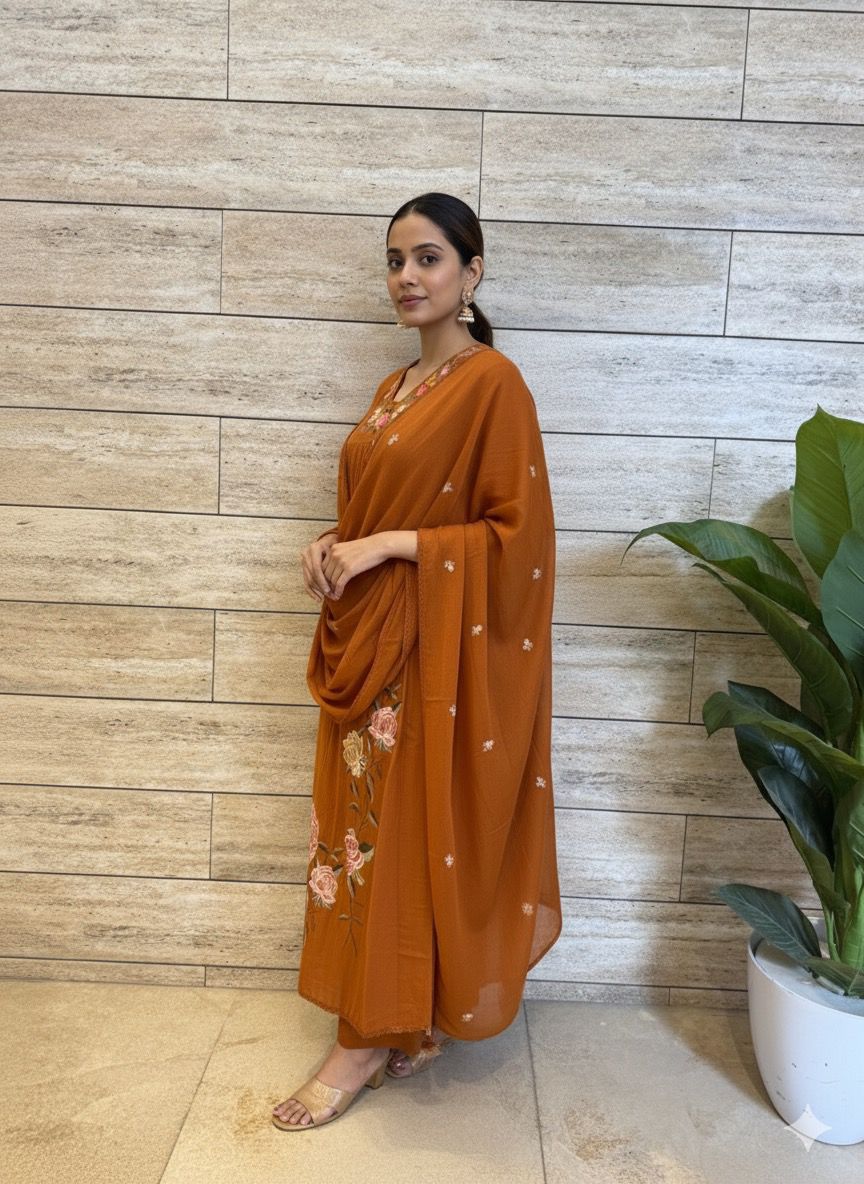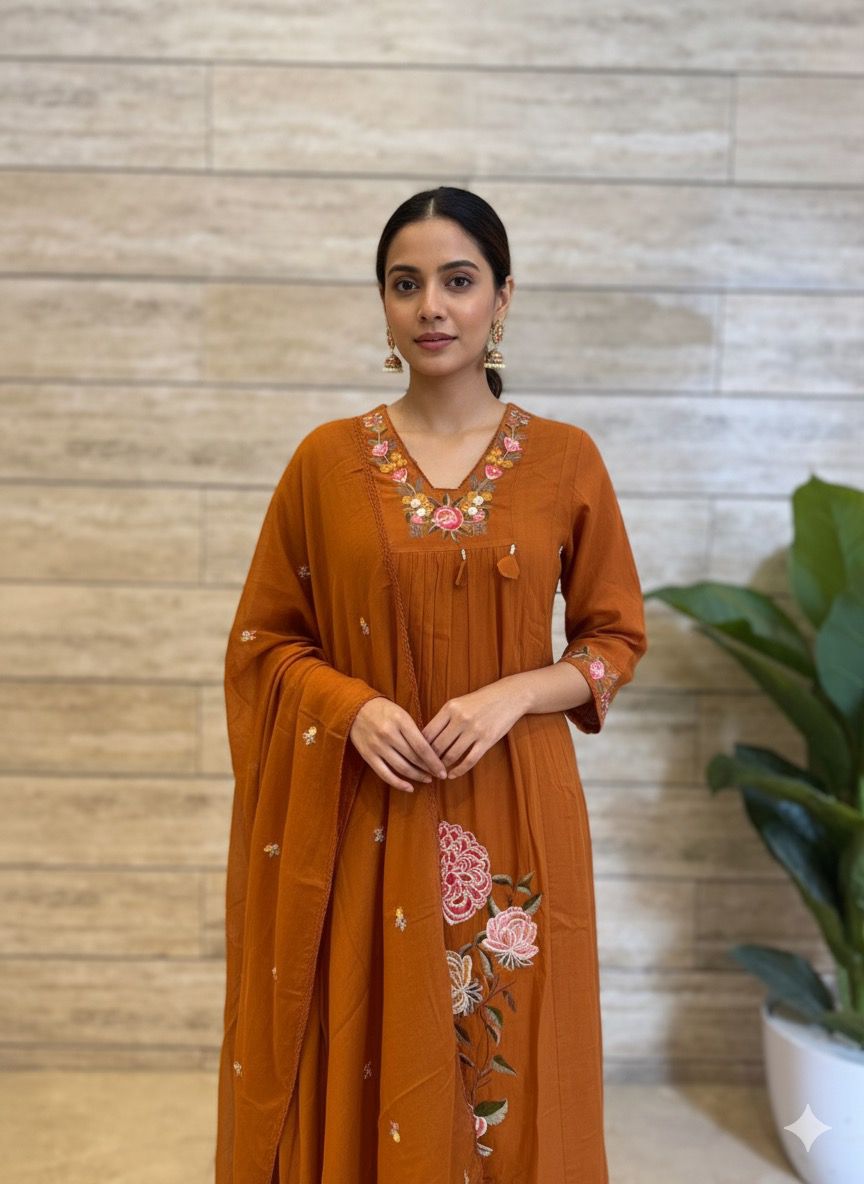 Pure Mul Cotton With Inner Dupatta Set With Embroidery Work MC012