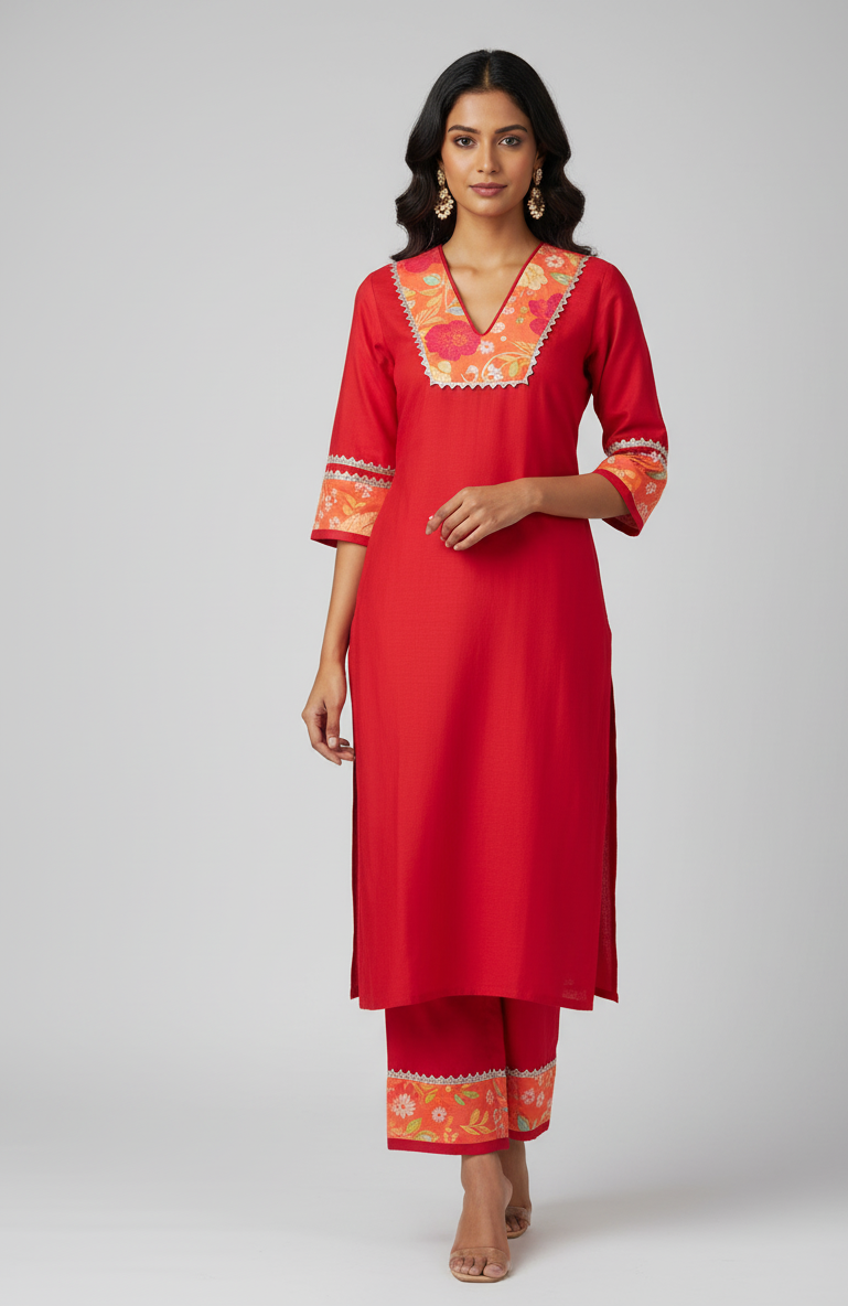 Pure Muslin Straight Two Piece Pant Set With Plazzo MPS009