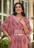Free style two piece pure Muslin kaftan dress available in two color with a beautiful hand block print. Being a silk based fabric it is as summer friendly as Cotton fabric is. So it’s a go to outfit for all those who wants to slay in style and stand unique among all.