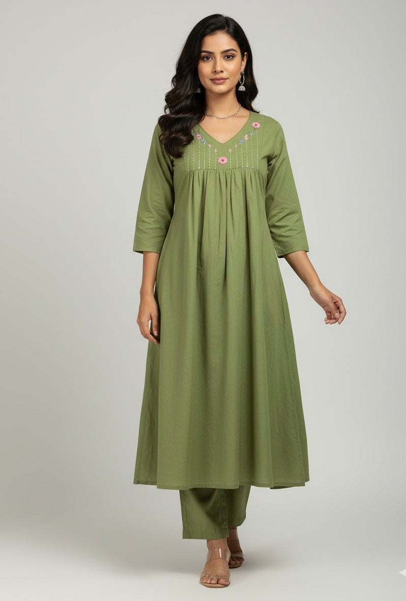 Solid Base Cotton Flex Two Piece Pant Set PS040